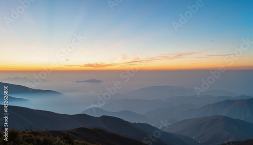 Fototapeta premium Serene mountain landscape at sunrise with misty valleys