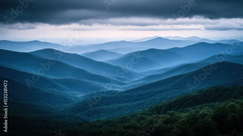 Obraz premium Serene mountain landscape captured with layers of undulating ridges and forests