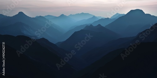Fototapeta premium Serene Mountain Landscape: Layers of Blue and Gray, Ideal for Nature-themed...