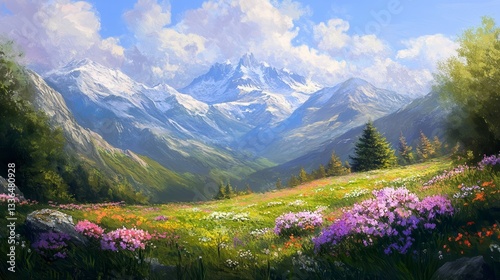 © Sakdecha, Fototapeta premium Serene Mountain Landscape Scene