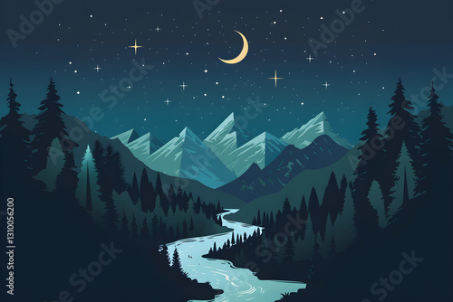 © Alan, Fototapeta premium Serene Mountain Landscape T-Shirt Design for Nature Lovers