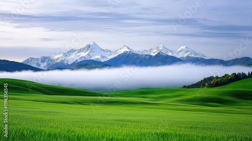 © Indatul, Fototapeta premium Serene mountain landscape with fog