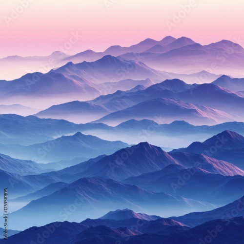© tanawatbig, Fototapeta premium Serene Mountain Landscape with Soft Purple and Blue Tones at Dawn