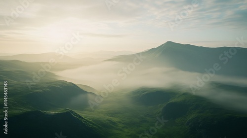 Fototapeta premium Serene mountain range covered by a blanket of fog during sunrise atmosphere