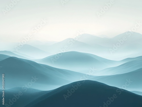 Fototapeta premium Serene Mountain Range Landscape with Layers of Peaks in Soft Blue Hues