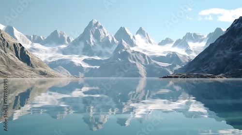 Fototapeta premium Serene mountain range reflection, majestic peaks and tranquil water scenery