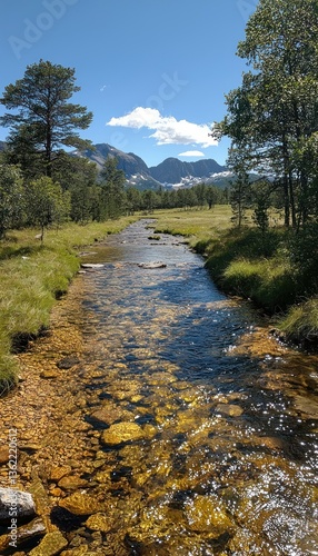 © Csppk, Fototapeta premium Serene Mountain Stream in Norway