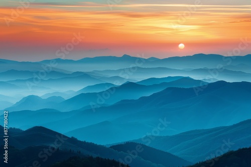 Obraz premium Serene Mountain Sunset Over Rolling Hills