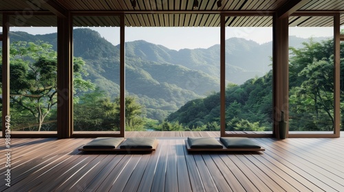 © @adha, Fototapeta premium Serene Mountain View Through Large Windows