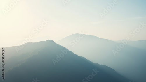 © tatchaihot, Obraz premium Serene Mountain View with Soft Haze