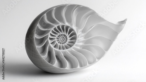 © luru, Obraz premium Serene Nautilus Shell Cross-Section Revealing Intricate Chambered Structure