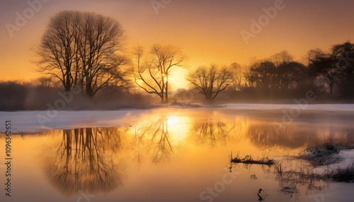 © huaomanz, Fototapeta premium Serene New Year’s Morning Sunrise