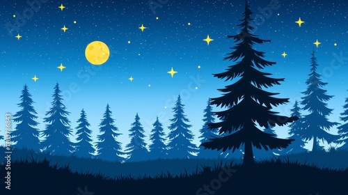 © naetichart, Fototapeta premium Serene Night Forest Pixel Art Yellow Moon and Silhouetted Trees