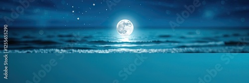 © Taley, Fototapeta premium Serene Night Full Moon over Ocean Waves Peaceful Seascape