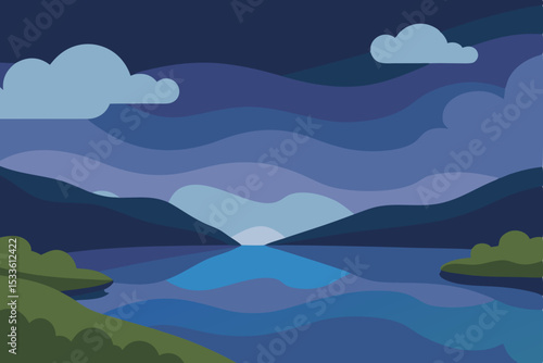 Obraz premium Serene Night Landscape Mountains, Lake, and Starlit Sky