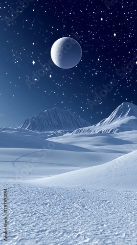 © Logos, Naklejka premium Serene Night Landscape with Crescent Moon and Distant Mountains