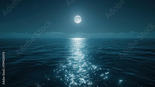 Fototapeta premium Serene Night Ocean View Under Bright Full Moonlight Reflection