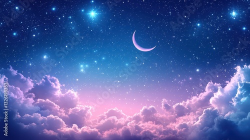 © Thuntaree, Naklejka premium Serene Night Sky with Moon and Colorful Clouds at Dusk