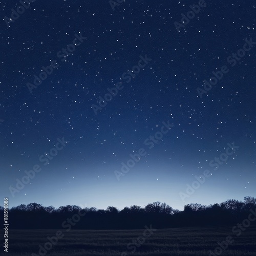 Naklejka premium Serene Night Sky with Stars Above Dark Forest and Field