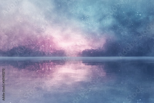 Obraz premium Serene nightscape with pastel sky reflecting on a calm lake, creating a...