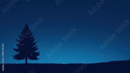 Fototapeta premium Serene Nighttime Landscape Featuring a Lone Evergreen Tree Under a Starlit Sky