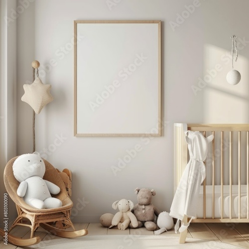 © dashtik, Obraz premium Serene Nursery Room with Crib and Chair in Natural Light
