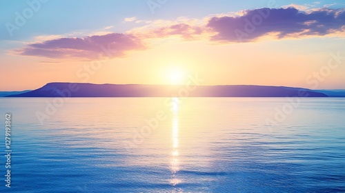 © Sam-th, Fototapeta premium Serene Ocean at Sunset with Horizon over Calm Water in Violet Sky with Clouds