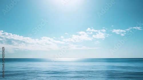 © wrap01, Fototapeta premium Serene Ocean Horizon with White Clouds Against a Blue Sky