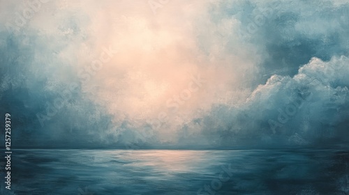 Fototapeta premium Serene ocean meets ethereal sky with soft light and clouds