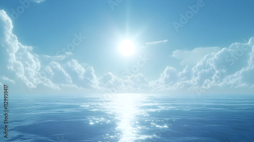 Fototapeta premium Serene Ocean Scene Under Bright Sunny Sky With Clouds