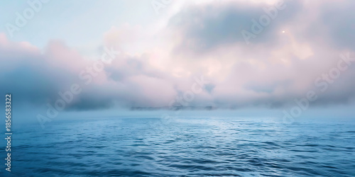 © Habib, Obraz premium Serene Ocean Scene with Calm Blue Waters and Pink-Hued Clouds