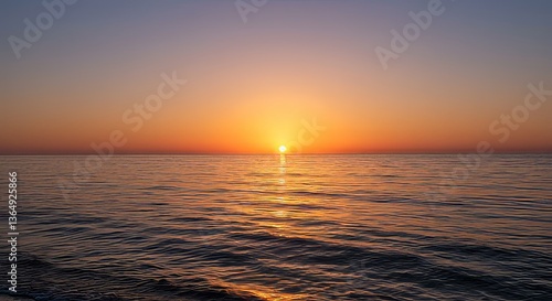 Naklejka premium Serene Ocean Sunset Golden Hour Seascape with Calm Waters and Vibrant Sky