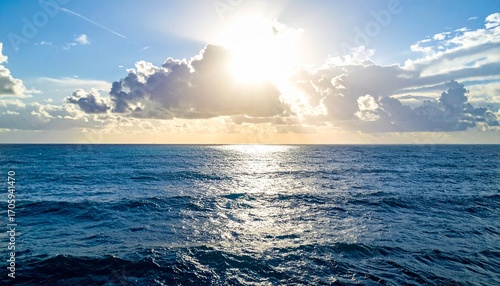 © ruangrit19, Fototapeta premium Serene Ocean Sunset Landscape Peaceful Seascape Sunny Sky.