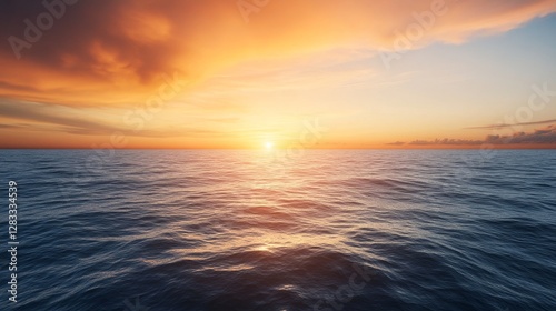 Naklejka premium Serene Ocean Sunset Over Calm Waters Illuminated by Golden Rays