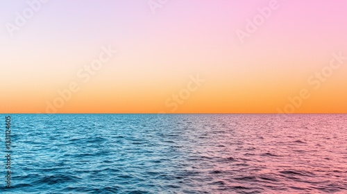 © Moree, Obraz premium Serene Ocean Sunset Pink and Orange Gradient Sky Over Calm Blue Water
