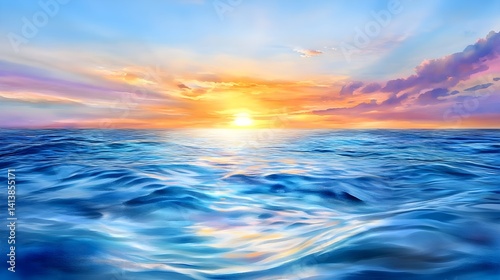 © terat, Obraz premium Serene Ocean Sunset: Seascape Painting - Digital art
