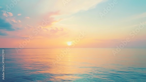 © wacharagorn, Obraz premium Serene ocean sunset with pastel skies and calm water reflections.