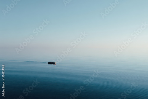 © Giorgi, Fototapeta premium serene ocean surface captured from above featuring solitary vessel gently floating