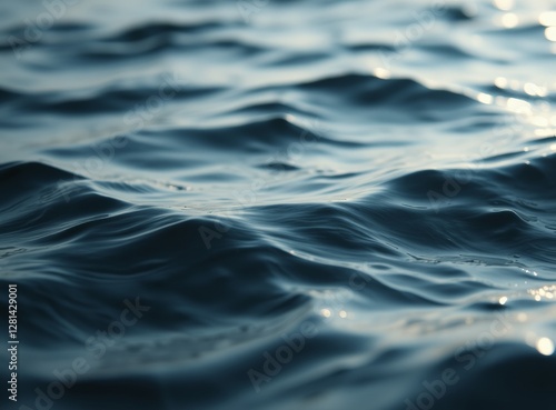 © rfassets, Naklejka premium Serene Ocean Surface with Gentle Waves. Sunlight Glitters on Calm Sea Water