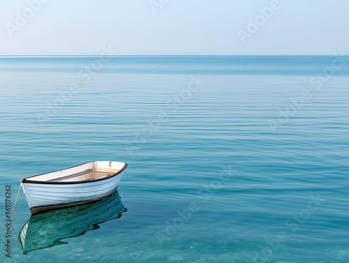 Naklejka premium Serene Ocean Vessel Amidst Solitary Waters
