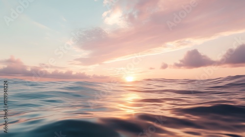Obraz premium Serene ocean view at sunset, showcasing vibrant colors and gentle waves.