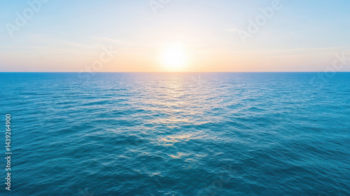Obraz premium Serene ocean view at sunset with gentle waves reflecting sunlight creates...