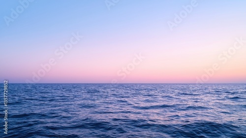 © MOPP, Obraz premium Serene ocean view at twilight, showcasing gentle waves under a gradient sky transitioning from blue to pink.