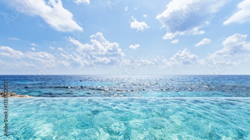 © Oat_Photo, Obraz premium Serene Ocean View Infinity Pool Crystal Clear Water Blue Sky