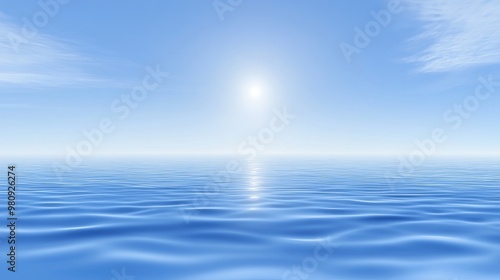 Fototapeta premium Serene ocean view under a bright blue sky, with gentle waves reflecting the...