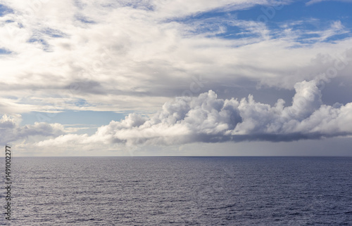 © edb3_16, Fototapeta premium Serene Ocean View With Expansive Cloudscape Under Blue Sky