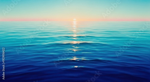 Obraz premium Serene ocean vista at sunrise with gentle waves reflecting sunlight and...