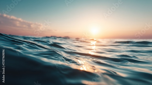 Obraz premium Serene Ocean Waves at Sunset with Soft Ripples Reflecting Warm Light and...