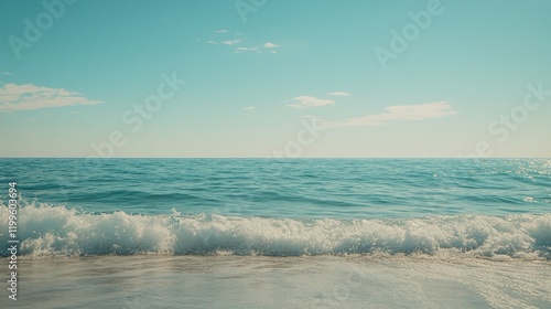 Fototapeta premium Serene Ocean Waves Crashing Gently On Sandy Shore