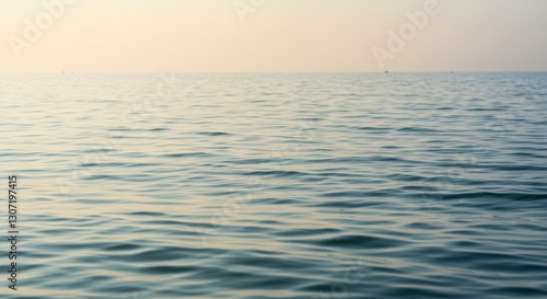 Obraz premium Serene ocean waves gently lapping against the shore during sunset, with a calm horizon